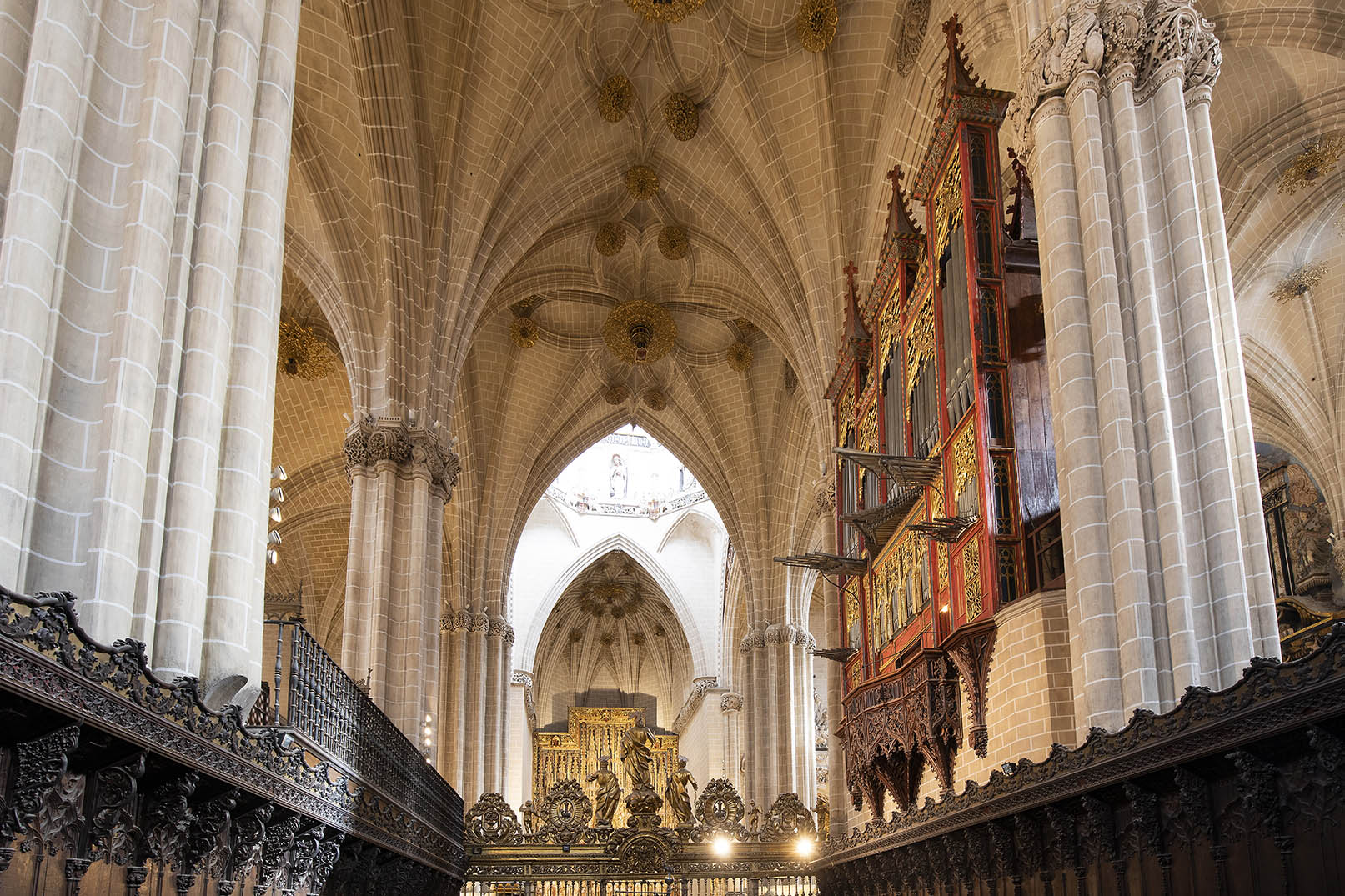 La primera planta está formada por una amplia sala dividida en dos tramos por un arco fajón apuntado que apea en ménsulas; ambos tramos se cubren con bóvedas de crucería sencilla. La sala se ilumina por medio de dos ventanales geminados en arco apuntado. Presenta un acceso tapiado que comunicaba con el edificio anexo adosado a la antigua muralla; el único acceso en uso es una puerta en arco ligeramente apuntado que comunica con el coro de la iglesia, a través de una escalera de caracol que atraviesa la escalera que conduce al campanario.